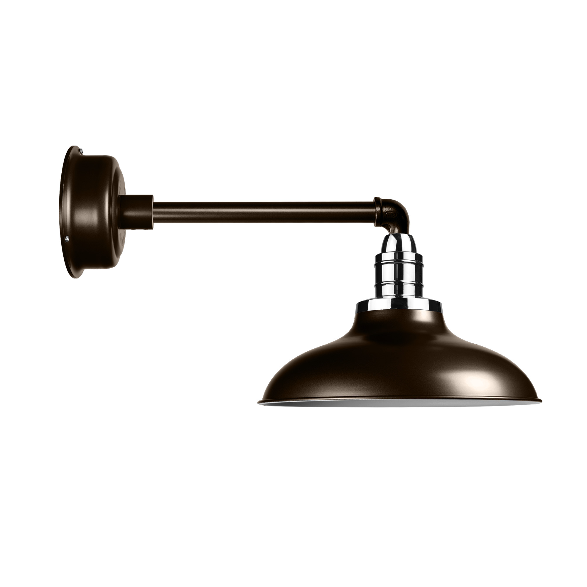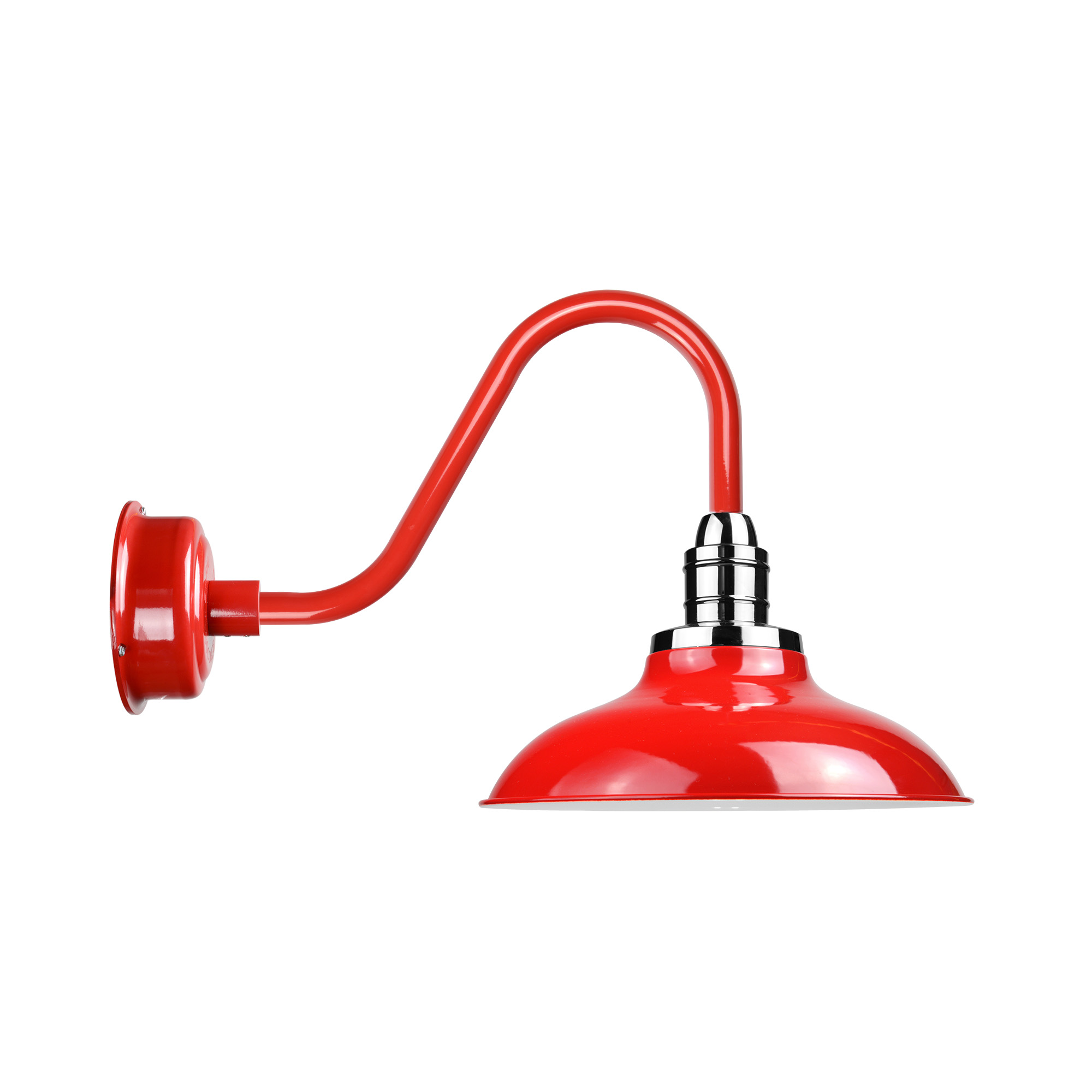 Our Peony Barn Light is a fusion of the rustic charm of vintage gooseneck lighting with the sleek lines of contemporary lighting design. Perfect for kitchen lighting, vanity lighting, or even exterior porch lighting, this lamp features a classically curved shade with a ribbed chrome accent for that modern touch.