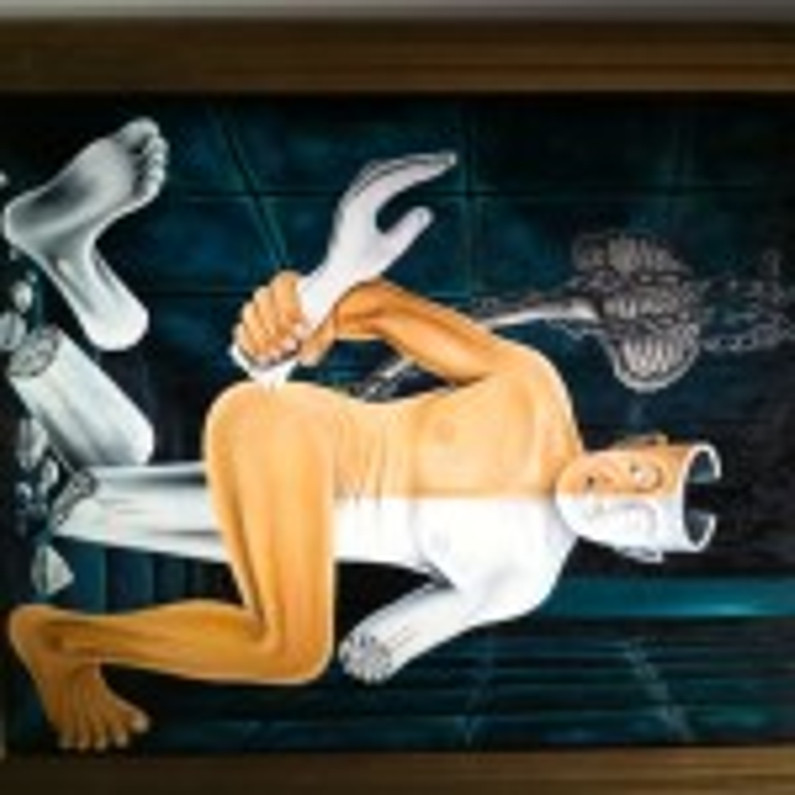 Another bit that I found very interesting about this show is that amongst all these paintings that depicted the anguish of the body, there are two portraits in the middle of the show Kevorkian painted of his parents. And right next to that sits the Thanatron, which is up for bid starting at $25,000. The show in general is a very interesting study of the body’s effect on the human soul, but I found it to be an interesting showcase of Jack Kevorkian himself. It was not necessarily revealing, but simply interesting. Everyone will find something different in his art and everyone will experience something about Jack Kevorkian that they interpret individually. All in all, I'd say that point makes for a fascinating show.