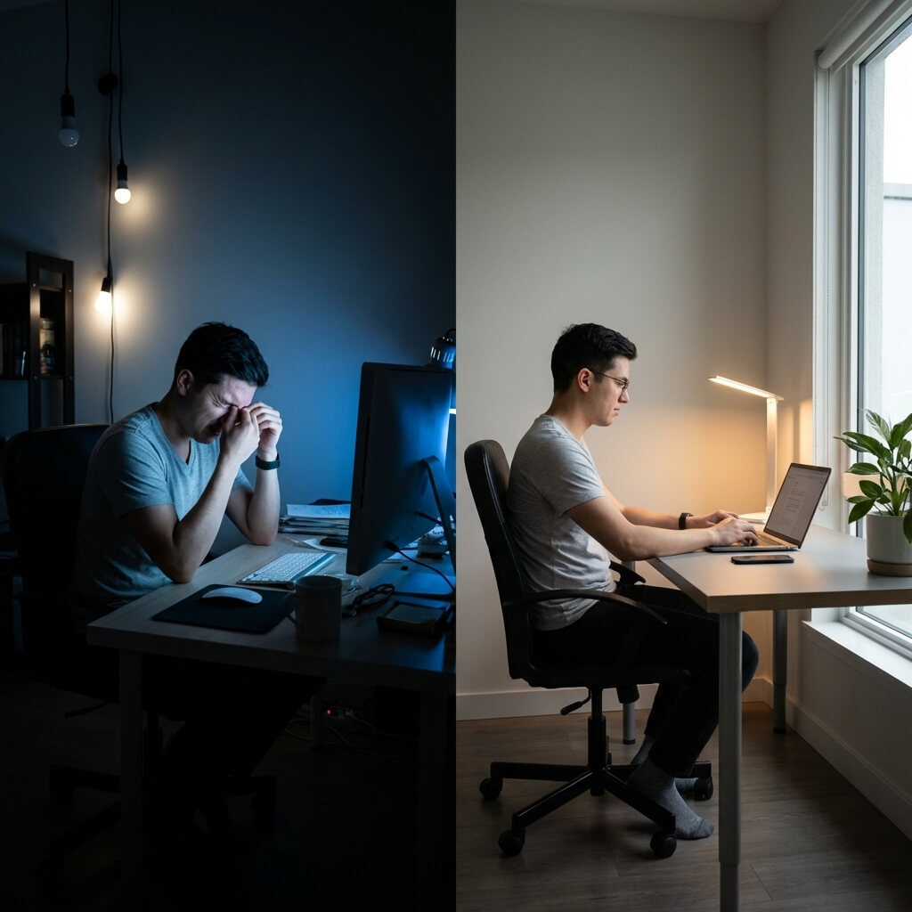 In this post, we will explore the science behind visual fatigue. You will learn exactly how to create a lighting setup that supports both your physical comfort and your daily productivity.