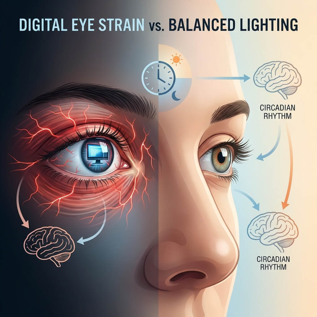 Proper lighting is not just a matter of aesthetic comfort. It is absolutely essential for your long-term eye health and daily productivity.